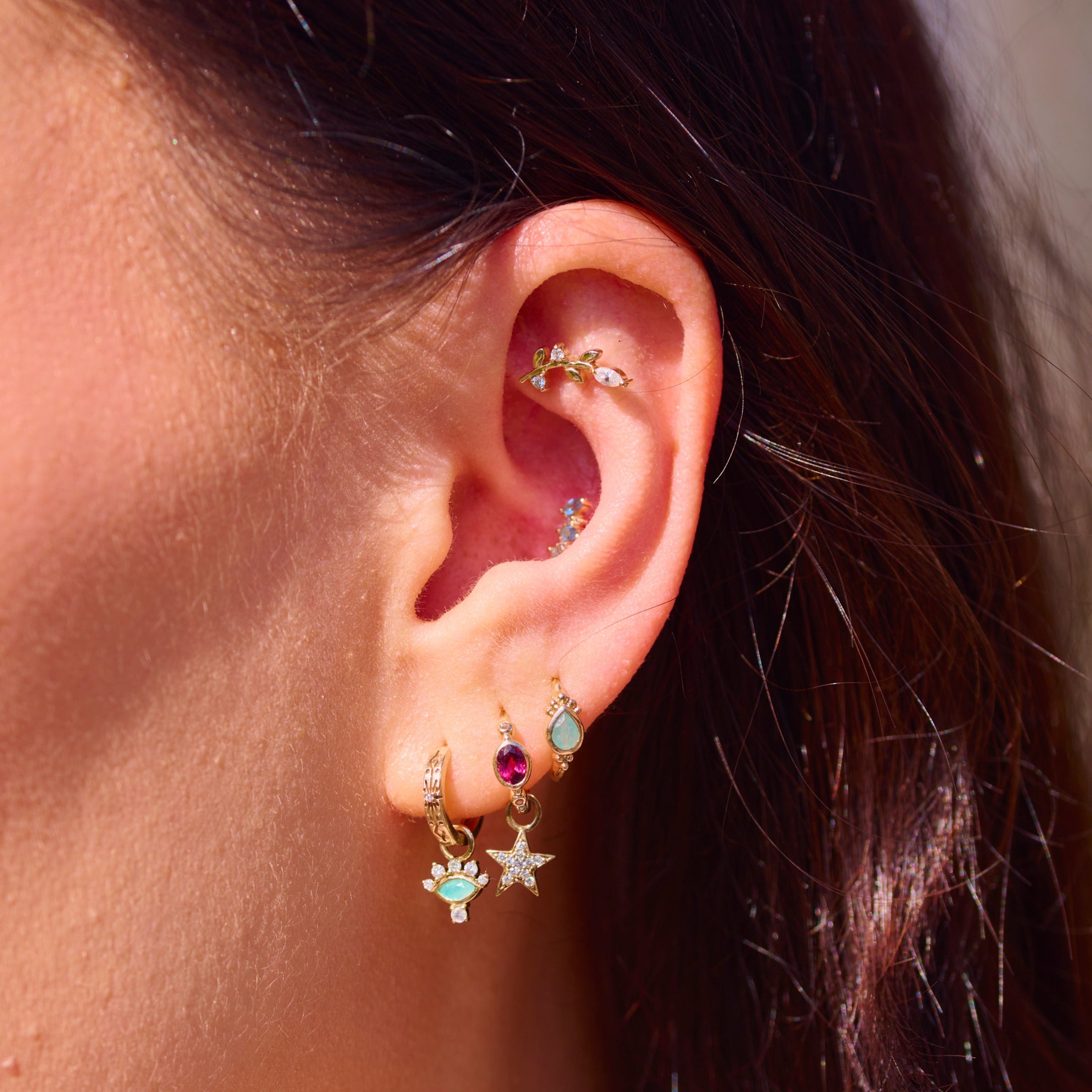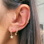 Add a touch of celestial elegance to your hoops with 11 sparkling round-cut white diamonds. Crafted in solid 9k yellow gold, these timeless pieces are perfect for everyday wear. Ethically sourced and beautifully made.