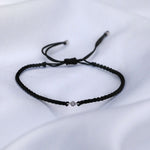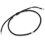 This stunning sterling silver bracelet features an elegant black plaited cord, adjustable with a sliding toggle for the perfect fit, and is adorned with a sparkling diamond—because diamonds are forever.