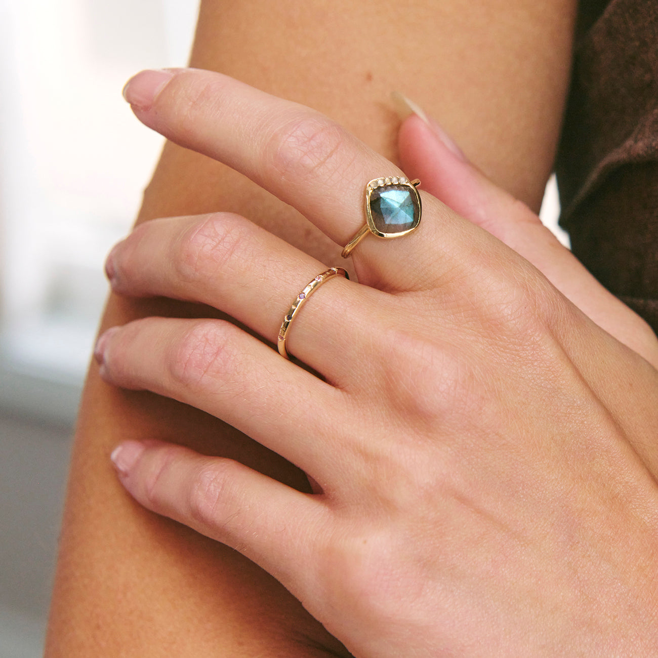 This is a beautiful ring, perfect for stacking. It looks great with the celestial band and it can be mixed and matched with lots of different options