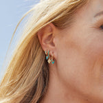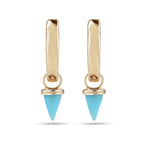 These hand-cut Turquoise spike hoops, set in solid 9k gold, add a bold pop of vibrant blue to your ear stack. Super versatile you can remove the charm for a second more simple look.