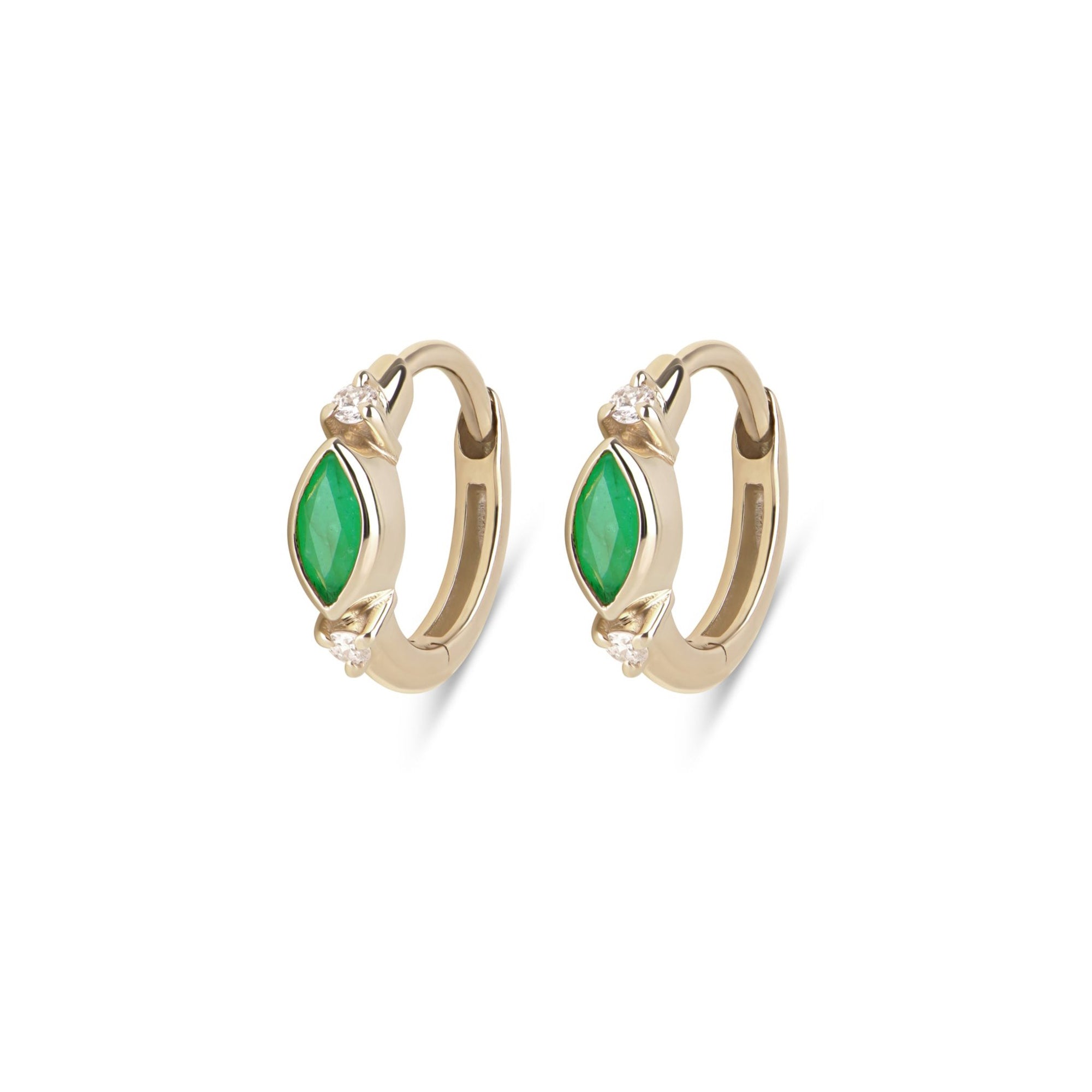 Emerald & Diamond Marquise Huggie Hoop Earring Pair 9k Gold