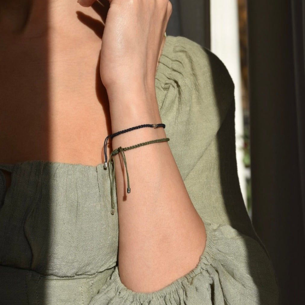 This stunning sterling silver bracelet features an elegant black plaited cord, adjustable with a sliding toggle for the perfect fit, and is adorned with a sparkling diamond—because diamonds are forever.