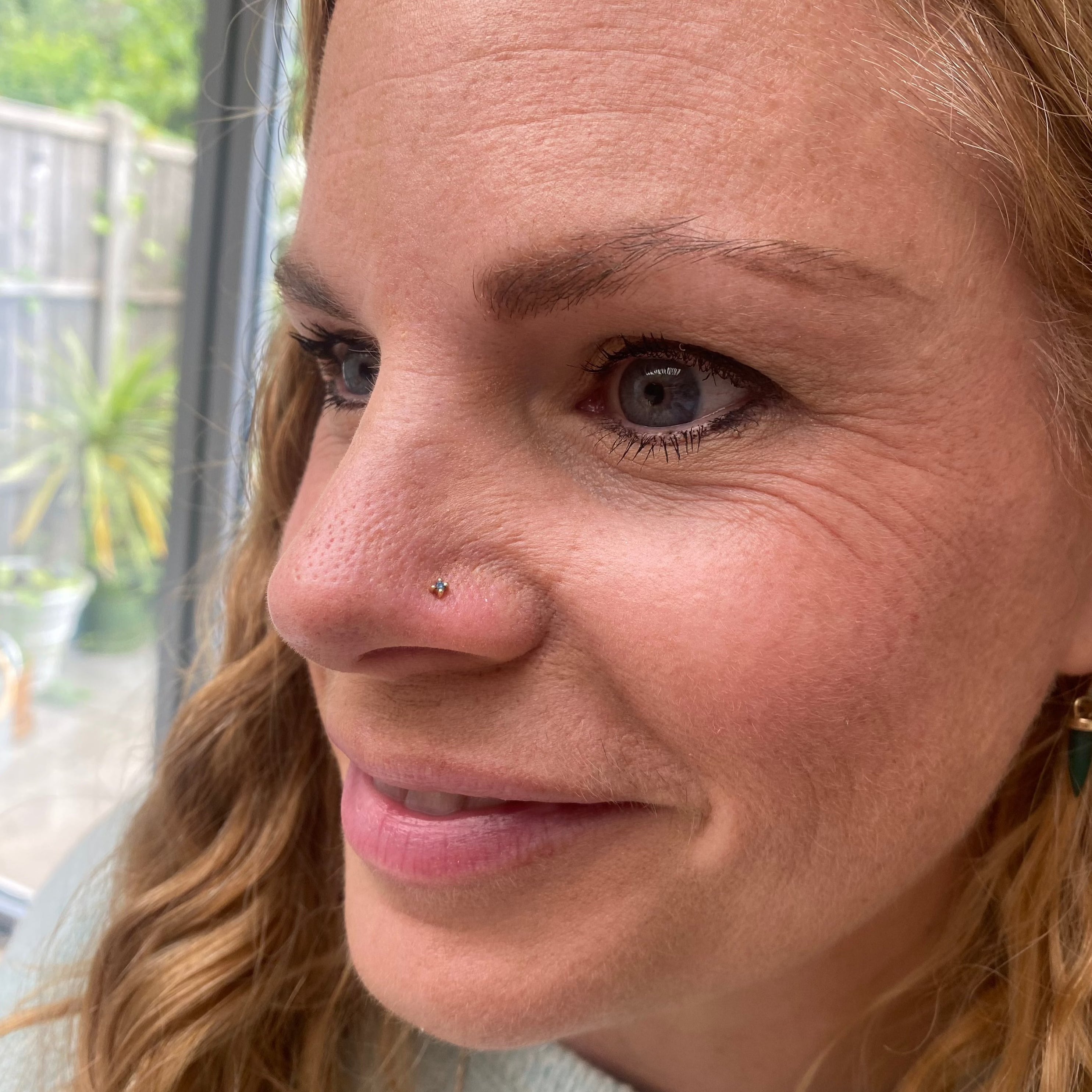 This stunning solid gold nose stud features a captivating blue diamond, known for its unique hue and brilliant sparkle, set in a sleek and minimalist design. What an exceptional gift or a special treat for yourself!