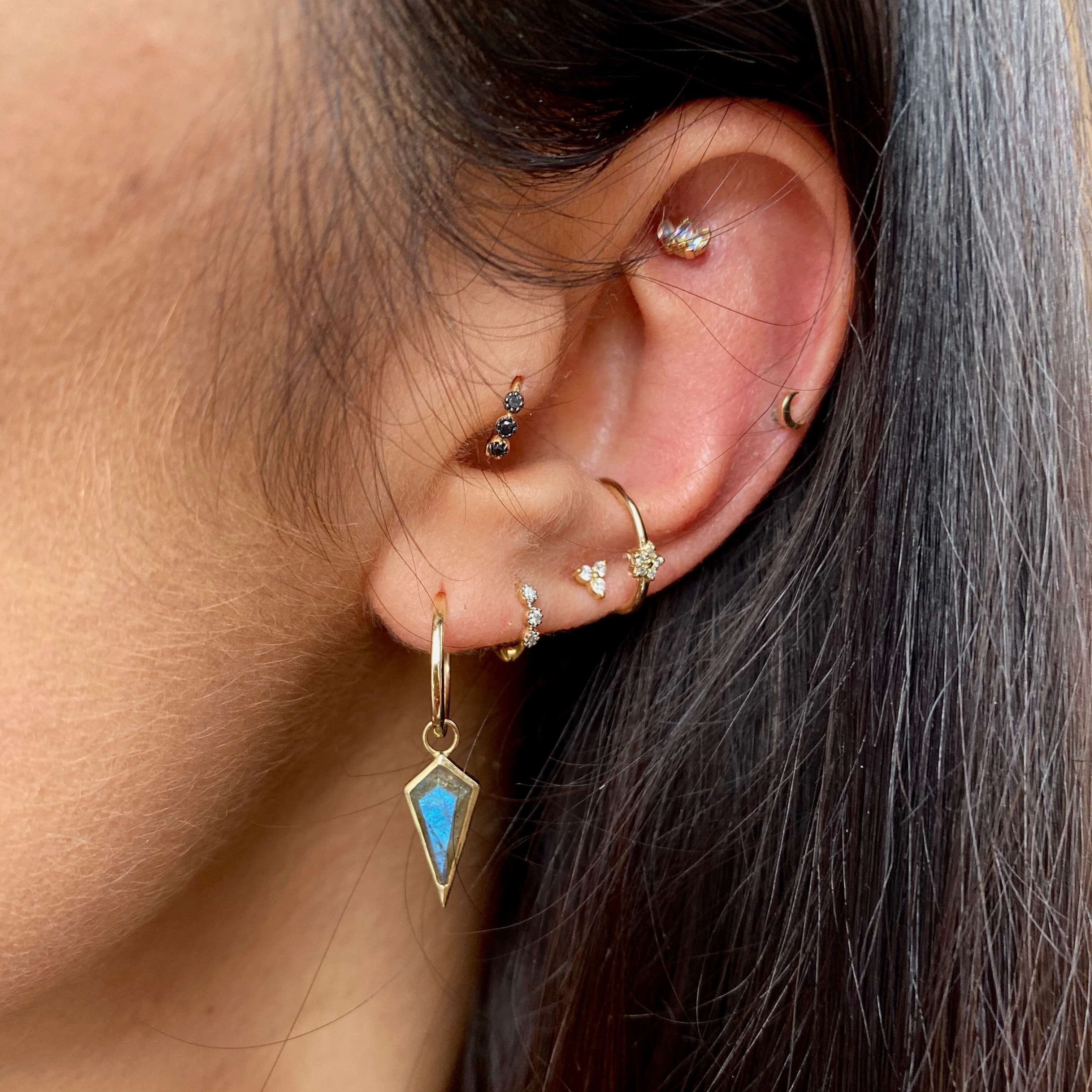Enhance your ear stack with the stunning blue-to-green hues of Labradorite! Crafted in solid 9k yellow gold, these hoops are perfect for everyday wear.