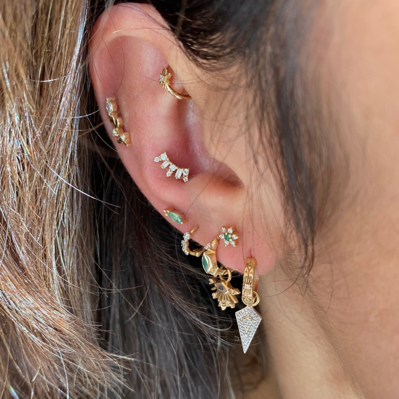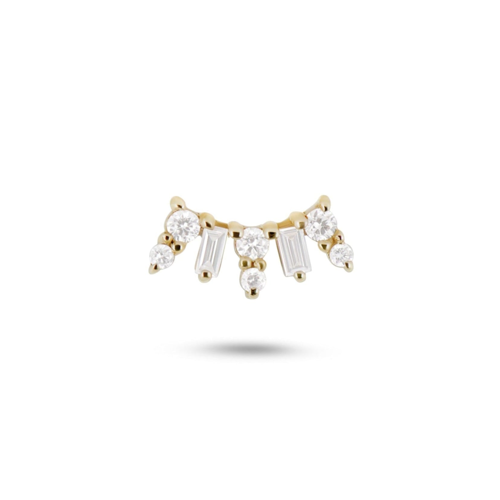 Add a luxurious sparkle to your look with our Diamond Fan Flat Back Earring in solid 9k Gold which combines sleek baguettes of natural diamonds with sparkling round lab grown diamonds for a super chic, modern look. Add a little sparkle to your life!