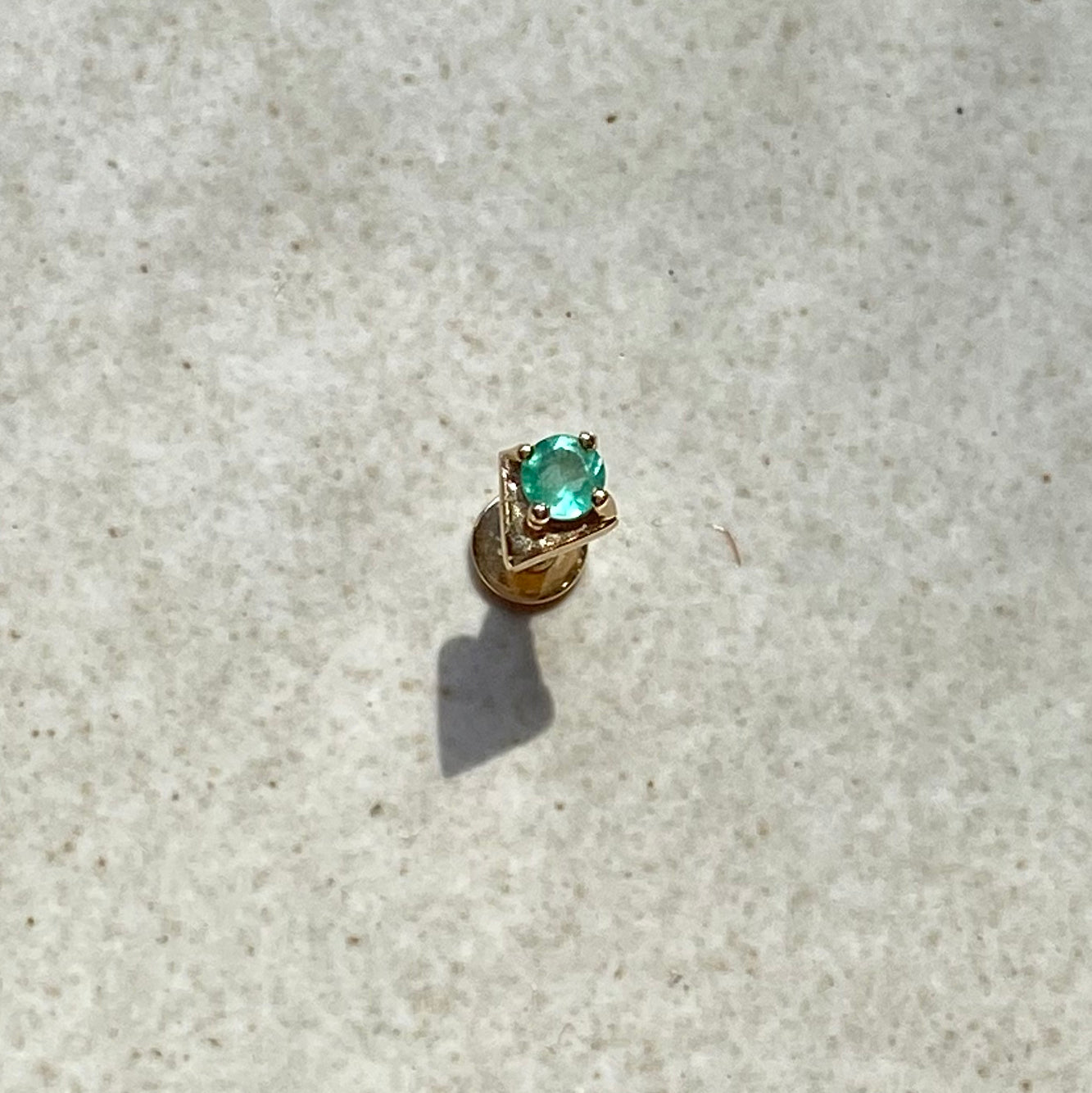 Made in recycled solid 9k Gold, this sleek flat back earring features a unique arrow design with a stunning Sakota Emerald stone in it's centre. Perfect for adding a touch of colour and calm energy to your ear stack. Add personality to your look!