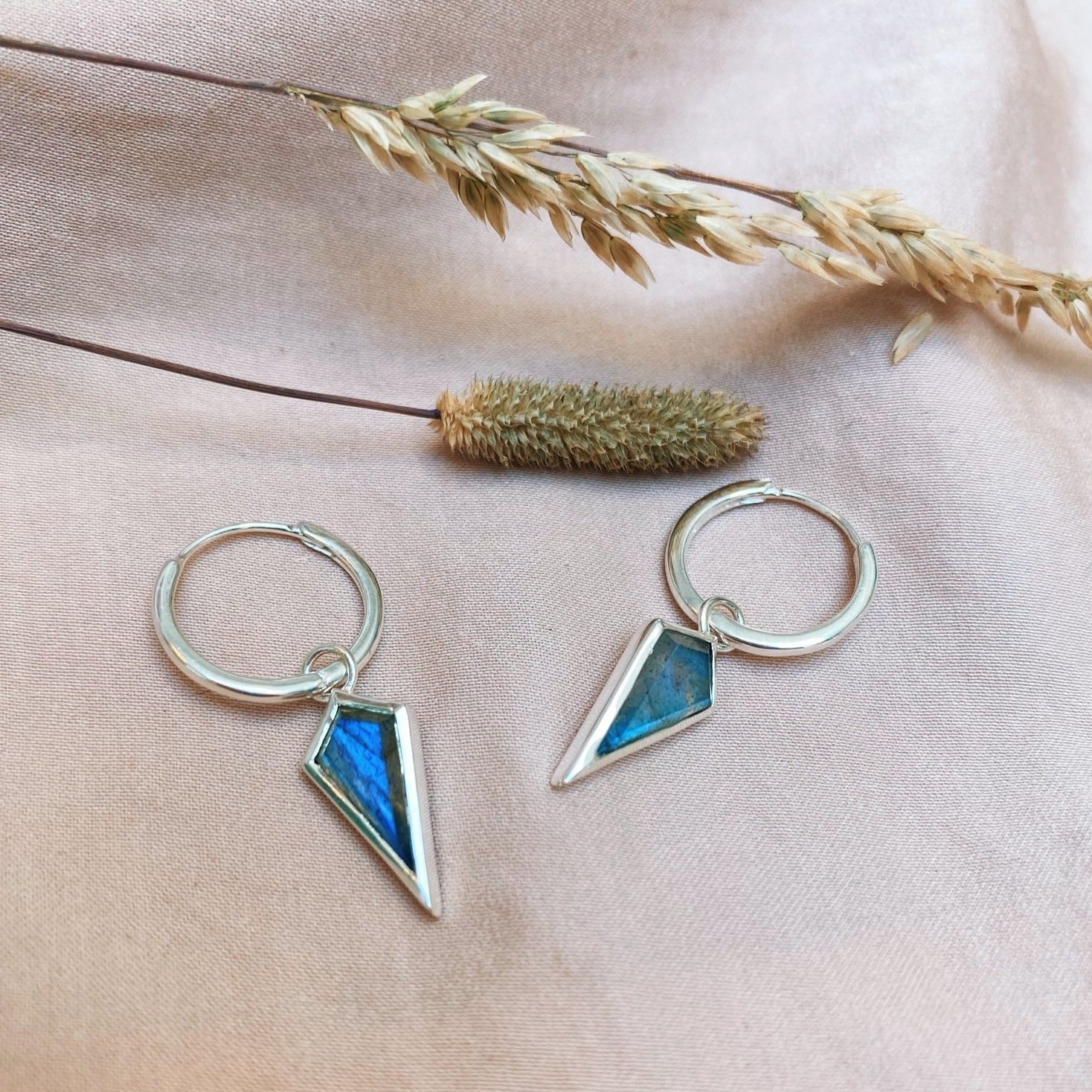 Labradorite Rhombus Hoop Earrings Sterling Silver