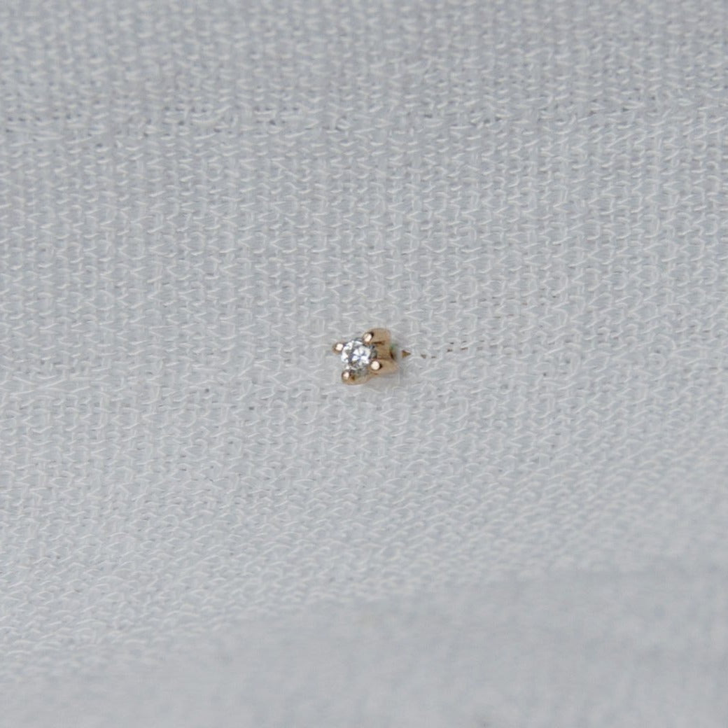 The diamond measure 1.5 mm in diameter, Length of post is 8 mm and thickness is 0.7 mm and 21 gauge.