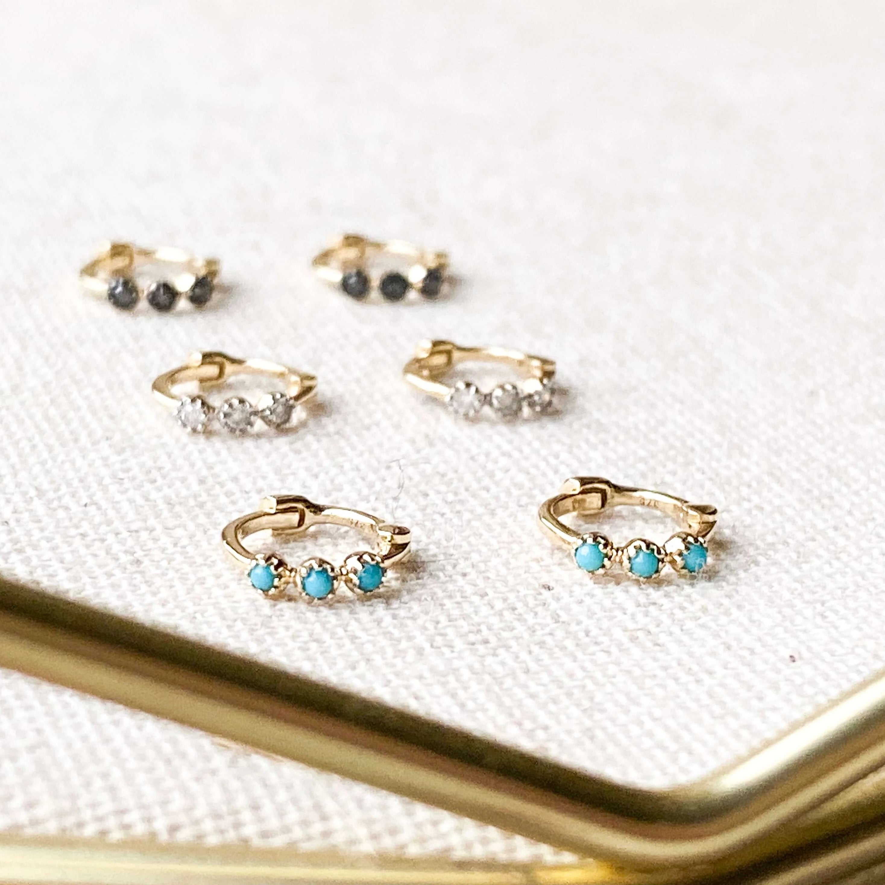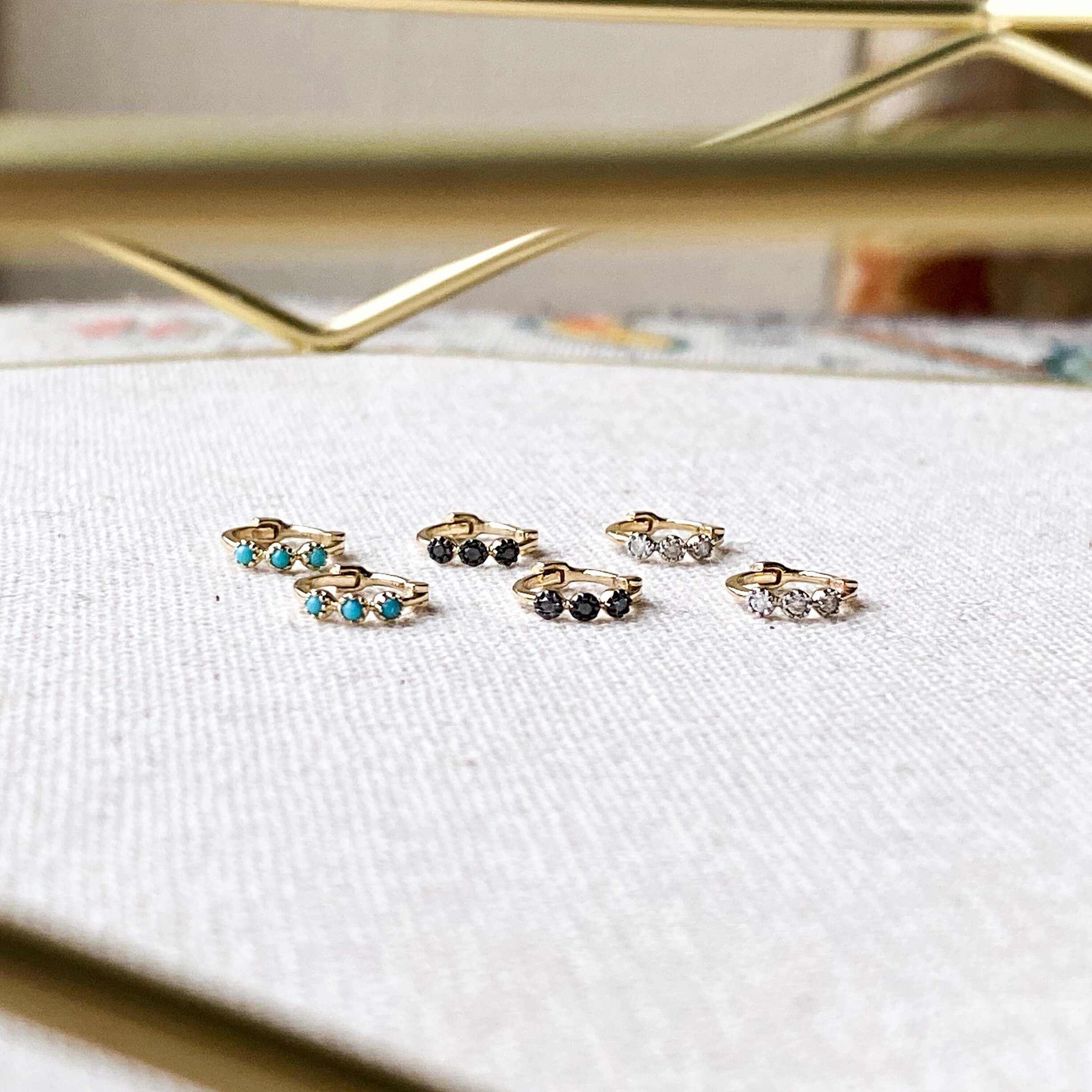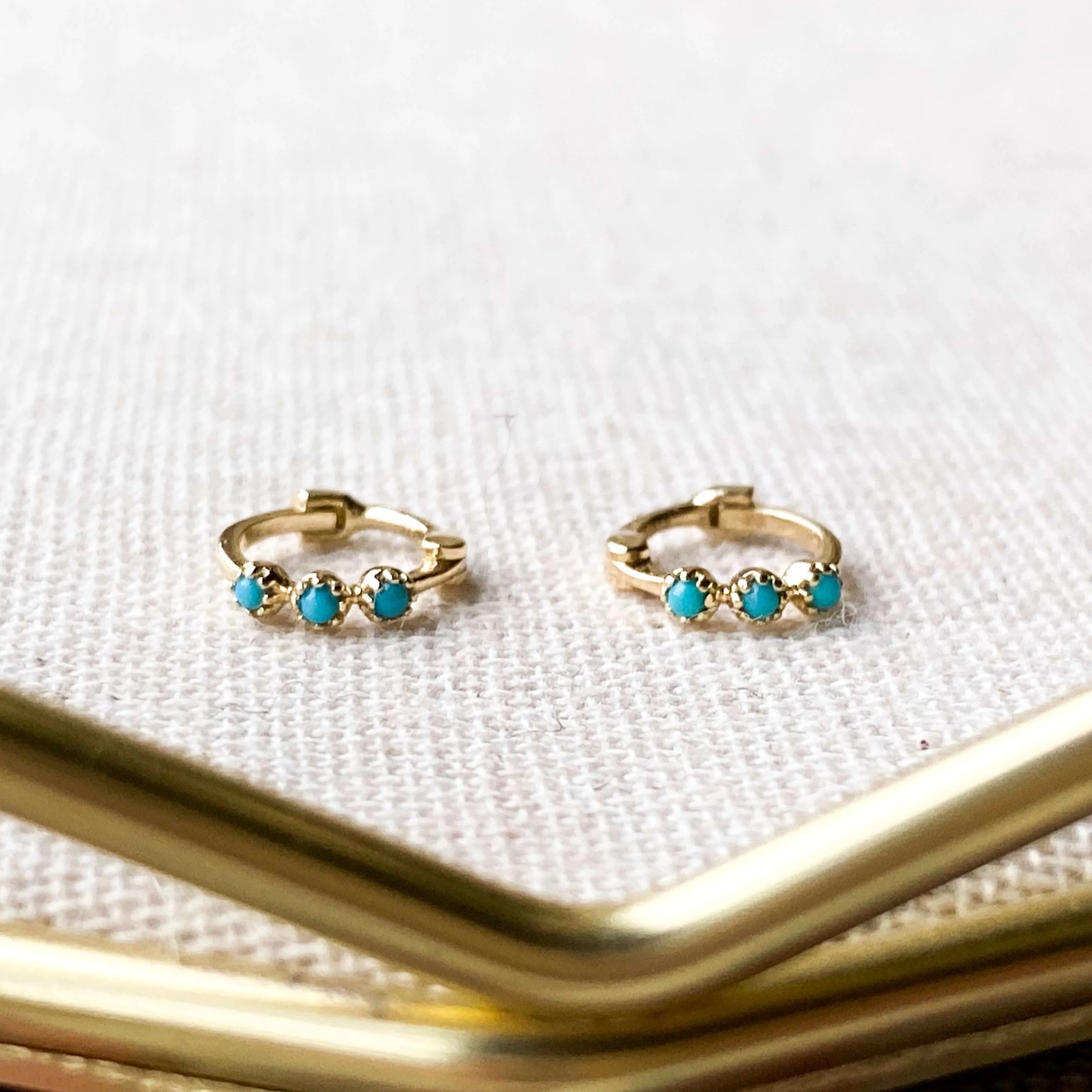 Mini Turquoise Trilogy Huggie Earring Pair