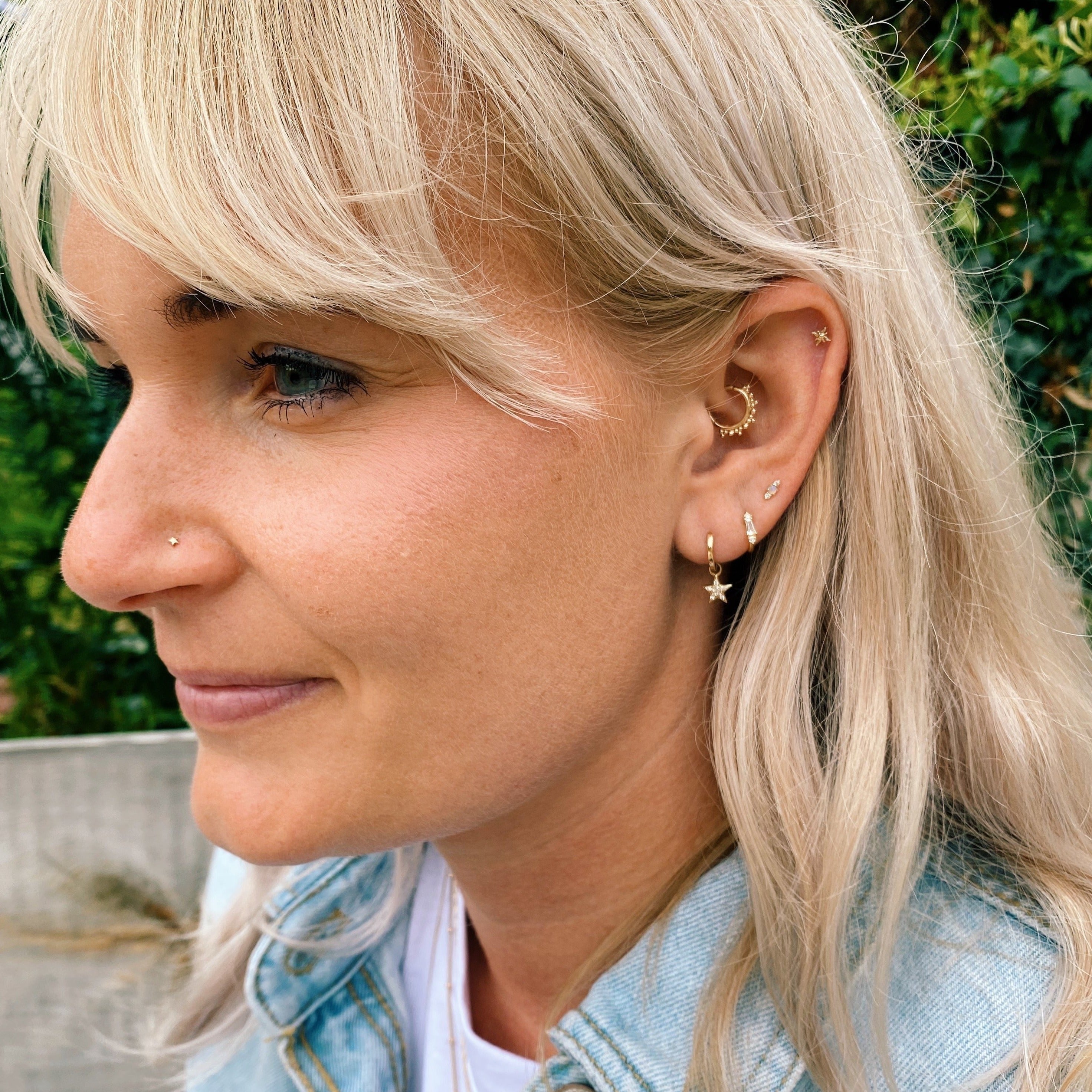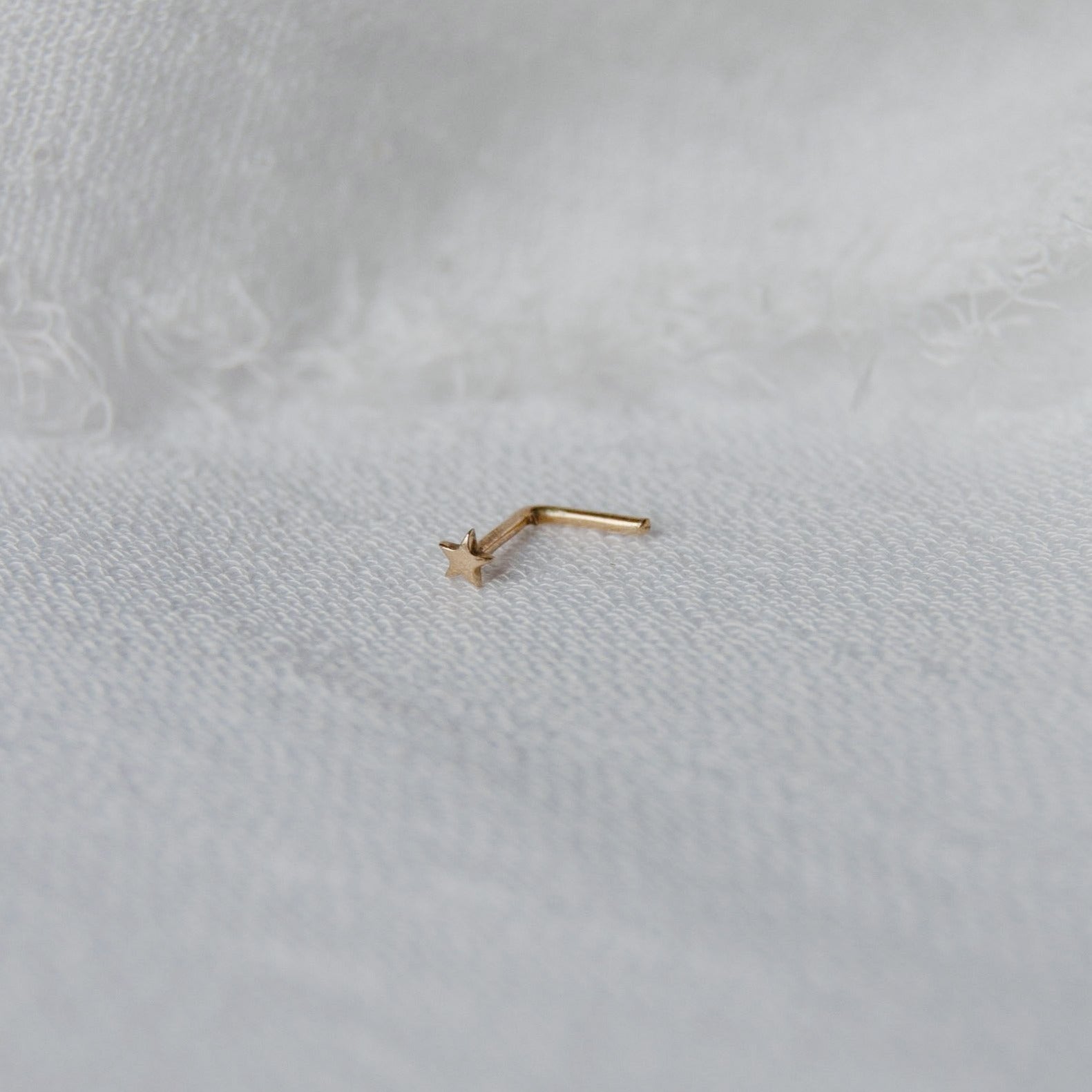 This delicate star nose stud is perfect for a celestial touch. Ethically sourced and crafted in solid 9k yellow gold, it's ideal for everyday wear.