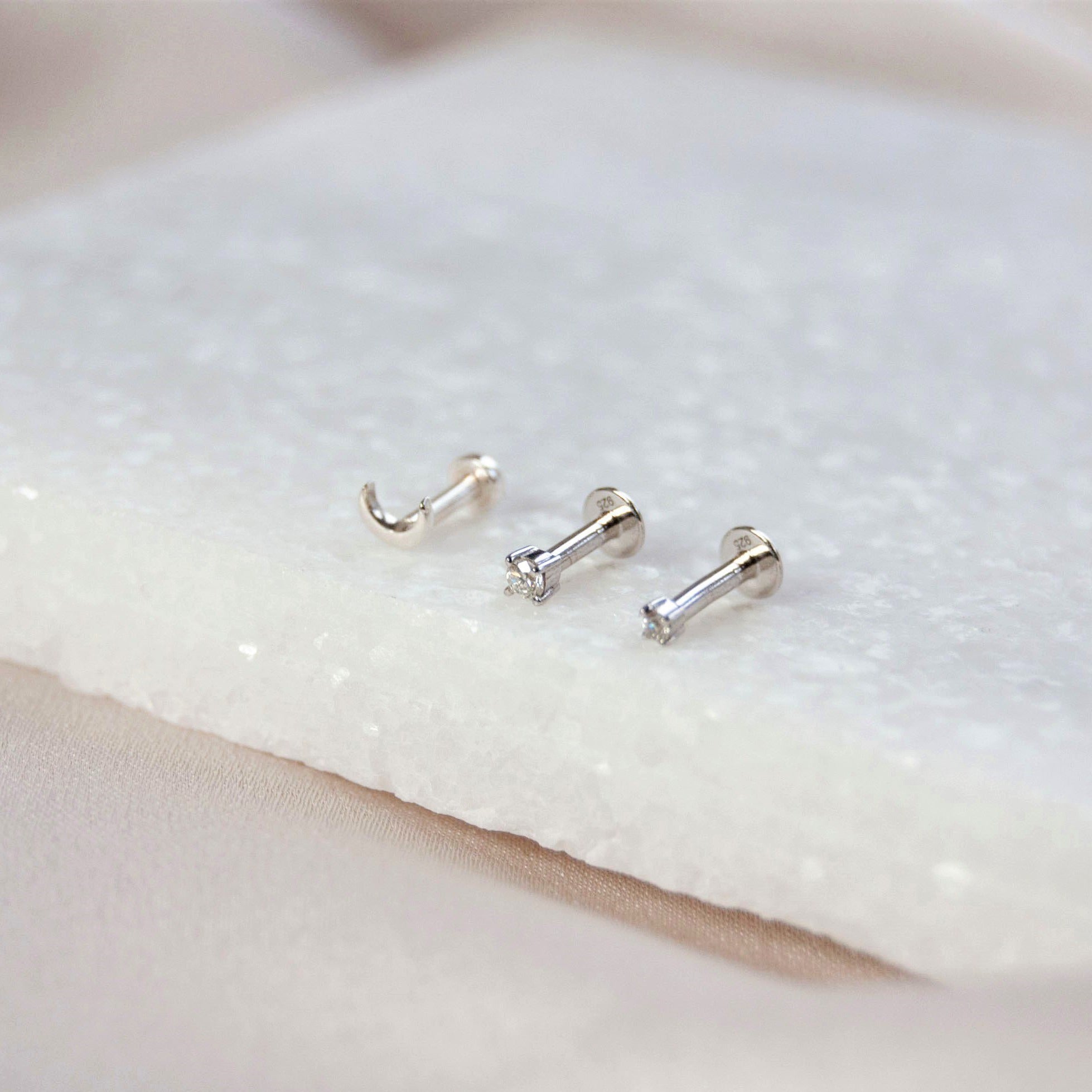 This elegant solitaire cartilage stud, featuring an ethically sourced white diamond, adds sparkle to any piercing. Crafted in solid 14k white gold, it’s perfect for all-day, everyday wear.