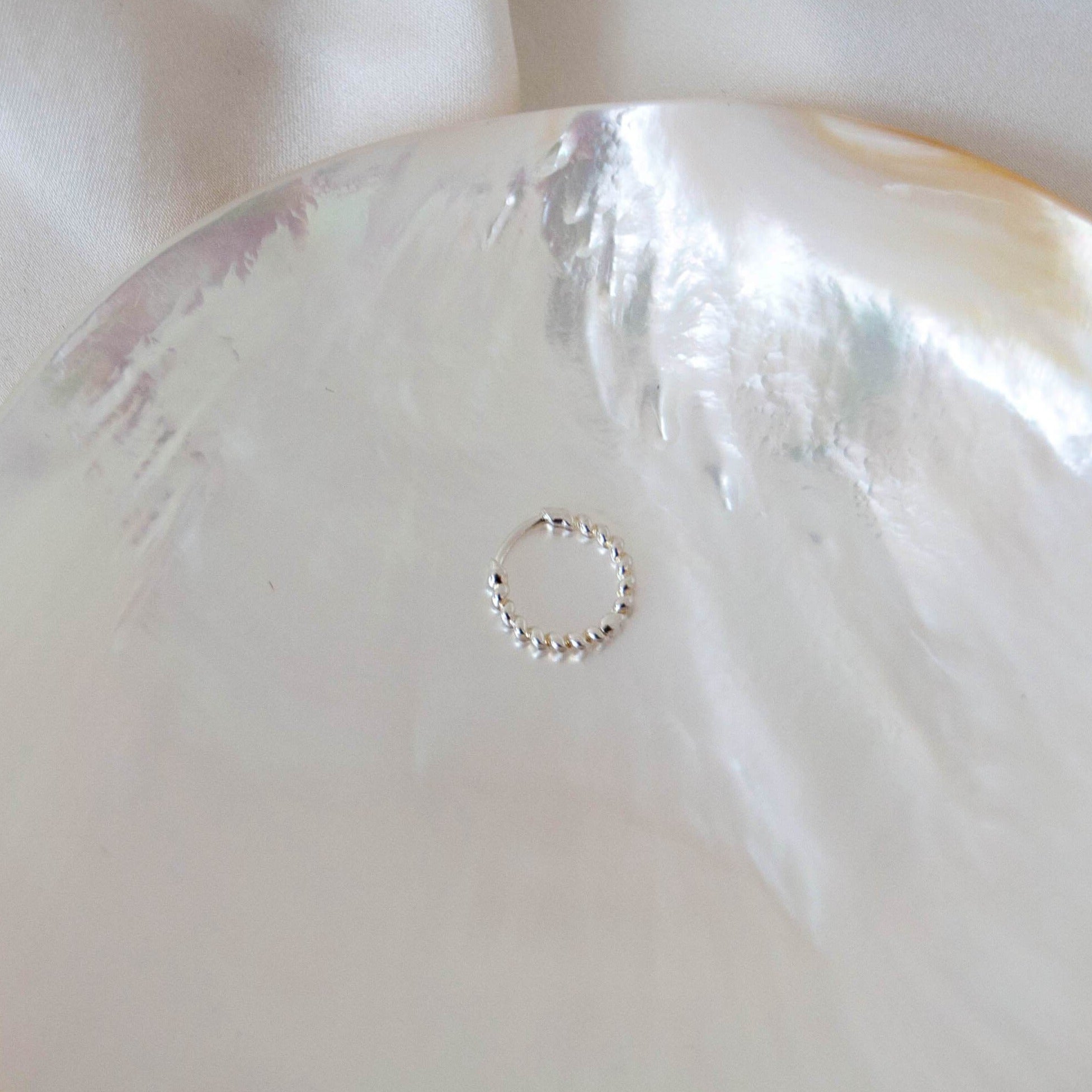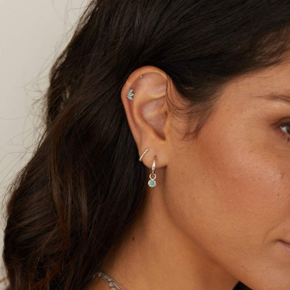 The twisted Huggie Hoop measures 11mm outside edge to outside edge, with an 8mm internal diameter. The hoop with is 1.5mm. The post thickness is 0.4mm and 26 gauge.