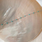 This beautiful 16" Turquoise Enamel Chain is a new firm favourite. We just know you are going to fall in love with this piece - it's a classic that you'll reach for time and again. Featuring turquoise enamel coated beads, the bright colour is a sure way to brighten any day, no matter how grey! Can be worn on its own for an understated look or why not layer and add one of our pendants.
