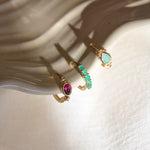This stunning Huggie Hoop Earring features a beautiful Amazonite stone set within a chic bohemian inspired hoop design made in recycled 9k Solid Gold. The soft, calming hue of the Amazonite adds a pop of colour, while the huggie style ensures a comfortable fit and a seamless look. A super versatile piece!