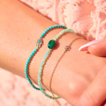 Perfect for adding a pop of colour to any outfit, this bracelet is made from recycled Sterling Silver features vibrant Amazonite beads, known for their calming turquoise blue hue, paired with a bold, single Malachite stone that adds depth contrast. The combination of these two beautiful gemstones creates a harmonious balance of energy and elegance.
