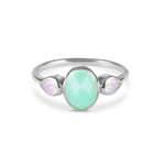 Experience the magical beauty of our sterling silver Chrysoprase & Moonstone Ring. This piece is very special and will not only elevate any outfit but the stones natural properties will bring you inner peace and harmony.