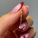 The Chain Hinge Huggie Hoop measures 10mm outside edge to outside edge, with an 8mm internal diameter and hoop width is 1.3mm. The chain drop is 10mm. The post thickness is 0.6mm and 22gauge.