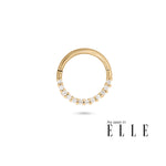 This front-facing daith hoop showcases 12 sparkling pavé-set diamonds. Crafted in solid 9k yellow gold with an easy click fastening, it's perfect for daith or septum piercings. Ethically sourced and effortlessly elegant!