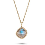 This solid gold Grecian Labradorite pendant is such a special and unique piece. It's design pays homage to the timeless elegance of Grecian art and culture, adding a touch of sophistication to your look. We are in love with the play of colours of the labradorite stone as it catches the light. The additional 5 mini labradorite stones at the top are just the perfect finish.