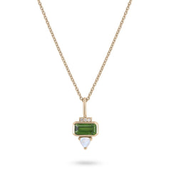Bring a touch of elegance to your everyday with our 9k Gold Green Tourmaline, Diamond & Moonstone Earring Charm. The jewel green of natural tourmaline sits beautifully alongside the soft iridescence of moonstone, with a sparkling ethically sourced diamond adding the perfect finishing touch. Together, they create a charm full of colour, light and subtle luxury.