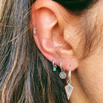 Enhance your ear stack with the stunning blue-to-green hues of Labradorite! Crafted in sterling silver, these hoops are perfect for everyday wear.