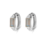 Labradorite & White sapphire Huggie Hoop Earring Pair Sterling Silver