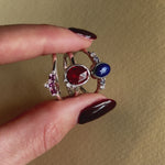 The Lapis, Tanzanite & White Sapphire Ring measures 6mm wide by 8mm high. The band at the back measures 1.3mm.