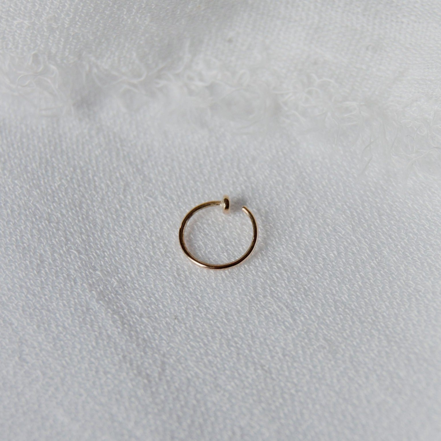 This super delicate ring sits closely against and the nose. Made in solid 9 karat gold perfect for everyday wear. The construction has a small disc at the end to ensure it is secure and comfortable when worn.