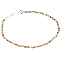 Multi Semi-Precious Stone Beaded Necklace Sterling Silver