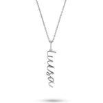 This solid sterling silver personalised pendant lets you choose any name or word, making it a unique and meaningful statement. Perfect for everyday wear or as a thoughtful gift. A blend of style and sentiment!