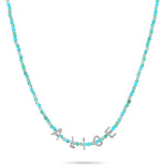 The Semi-Precious Beaded Name Necklace measures 15" in length with 2" extender chain so it can be worn at 15", 16" and 17". The letters & charms measure approx 5mm high.