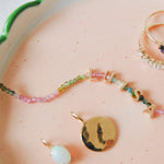 Create your own personal piece of jewellery. Choose beads from options like Watermelon Tourmaline, Amazonite, Turquoise, Pink Quartz or orange carnelian. Personalise with up to eight solid sterling silver letters. Create a unique piece with initials, symbols names, or meaningful words to wear every day.