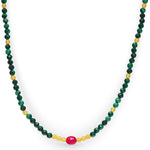 Pink Quartz, Citrine & Malachite Beaded Necklace