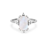 Rectangle Moonstone & White Sapphire Ring Sterling Silver