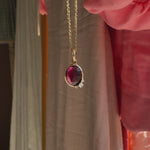 This absolutely stunning pendant made from recycled Solid 9k Gold features a harmonious trio of natural gemstones. The deep pink hue of Rhodolite, the ethereal glow of Moonstone, and the radiant sparkle of White Sapphires come together in a beautifully balanced design.