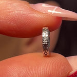 The Huggie measures 11mm outside edge to outside edge, with a 8.5mm internal diameter. The hoop width is 2mm. The post thickness is 0.7mm and 21 gauge.