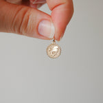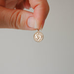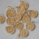 The Zodiac Coin Pendant measures 10mm in diameter. The bale measures 4mm x 3mm internally.