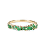 This absolutely stunning recycled solid 9k gold ring features scattered emeralds, adding a touch of vibrant colour to your day and elegance to any look. Perfect for special occasions or everyday wear. Make it yours!