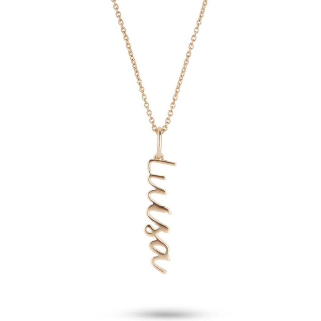 This solid 9k gold personalised pendant lets you choose any name or word, making it a unique and meaningful statement. Perfect for everyday wear or as a thoughtful gift. A blend of style and sentiment!
