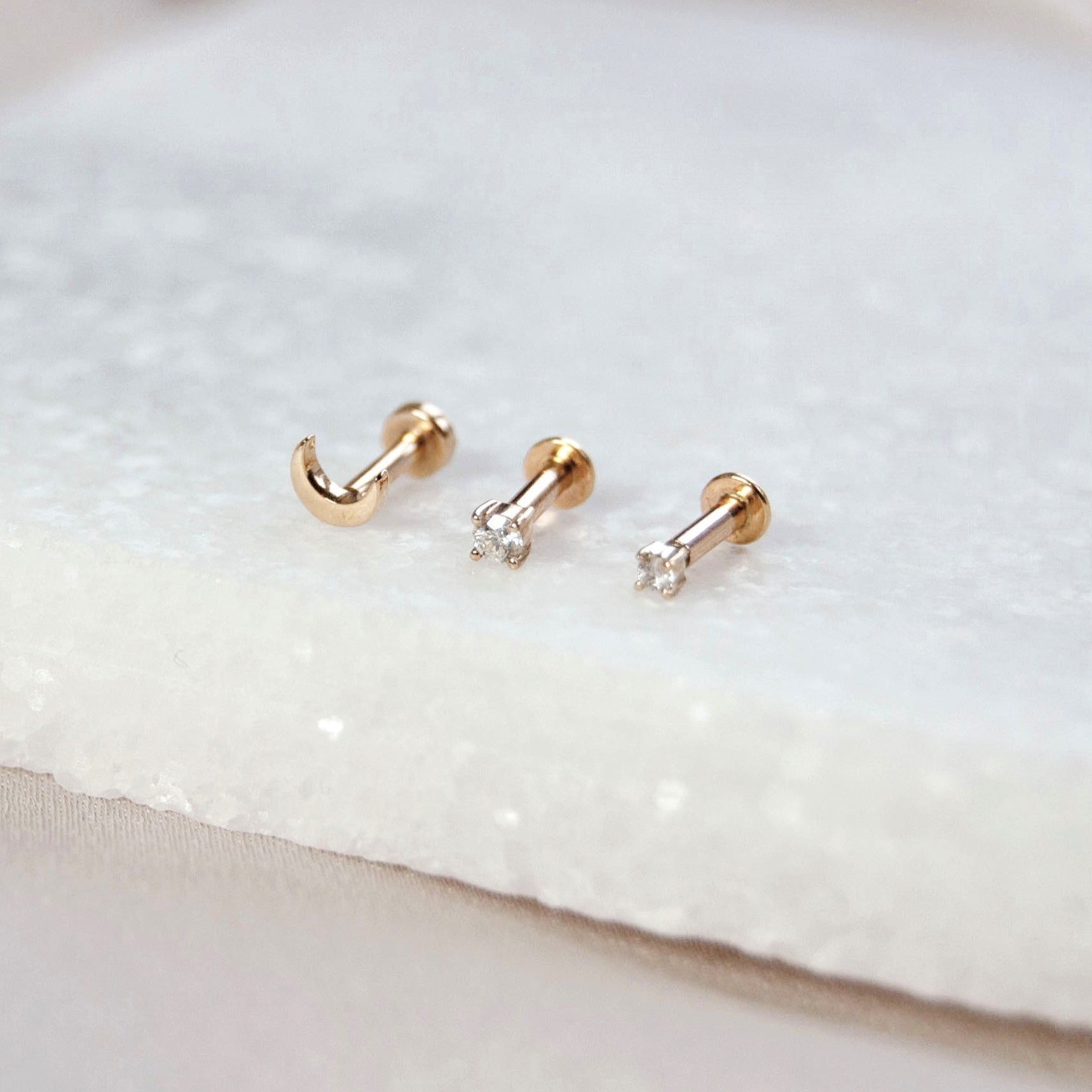 Add a touch of sparkle to your outfit with this elegant Diamond Solitaire Flat Back which looks gorgeous in any piercing! In Solid 14K Gold.