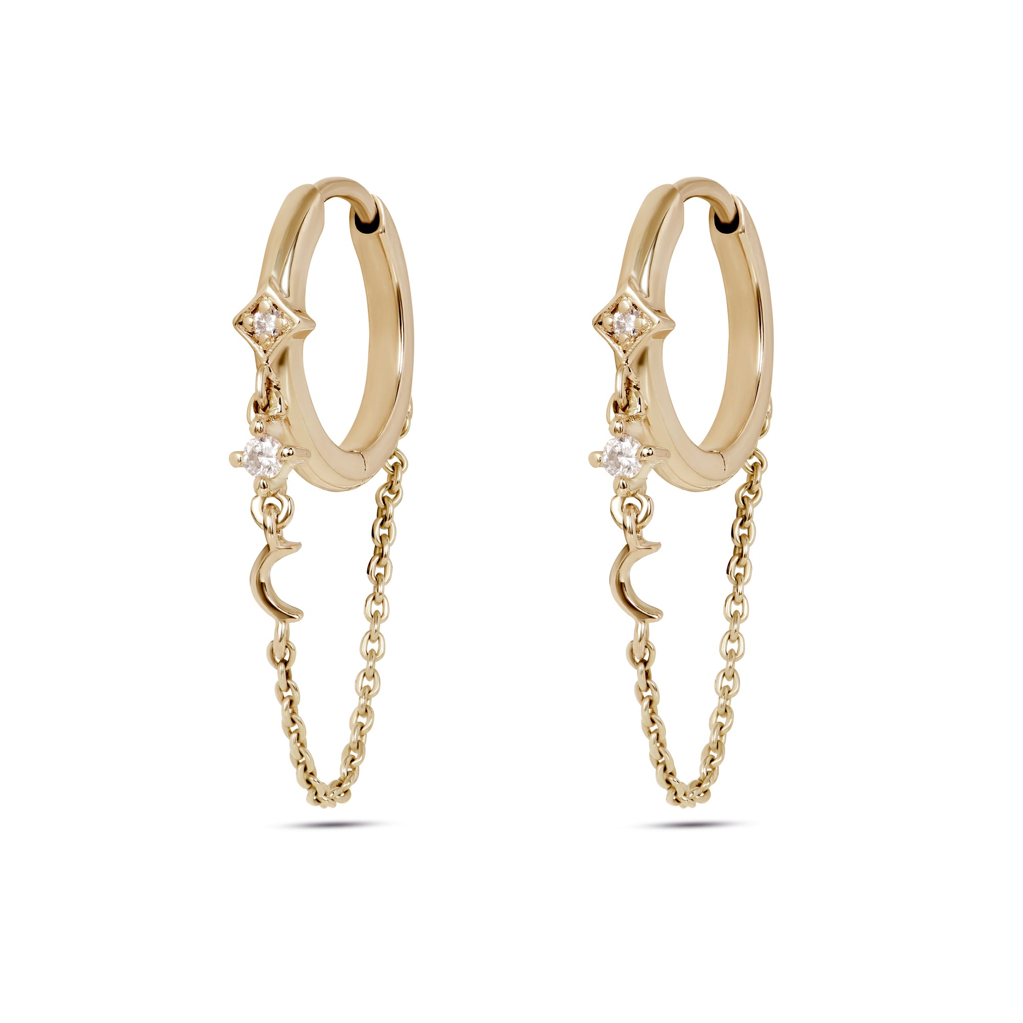 Diamond Moon Chain Huggie Hoop Earring 9k Gold Pair