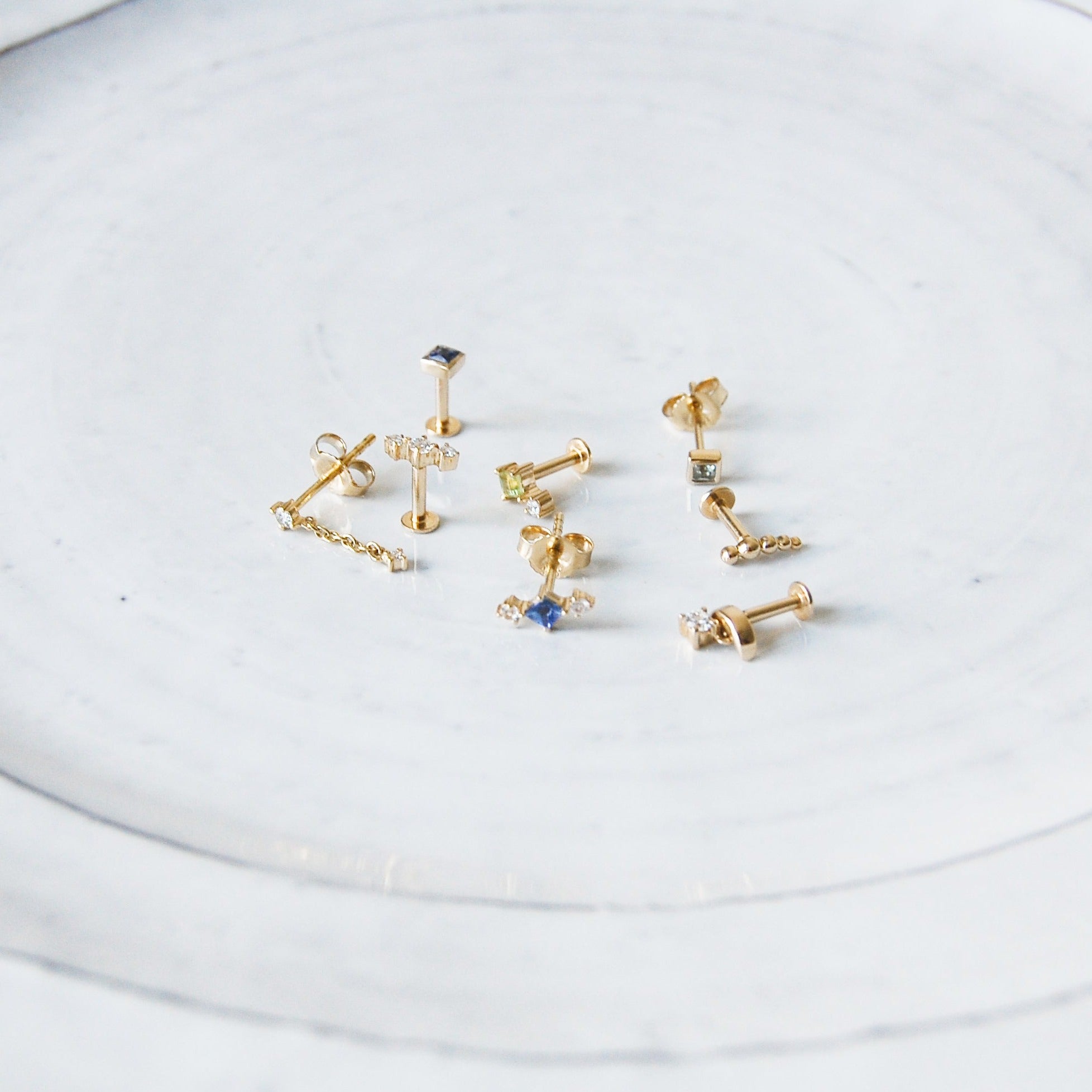 This gorgeous solid 9k gold flat back features beads of different sizes arranged in a graduated pattern creating a visually appealing and balanced design as well as a timeless and elegant look.