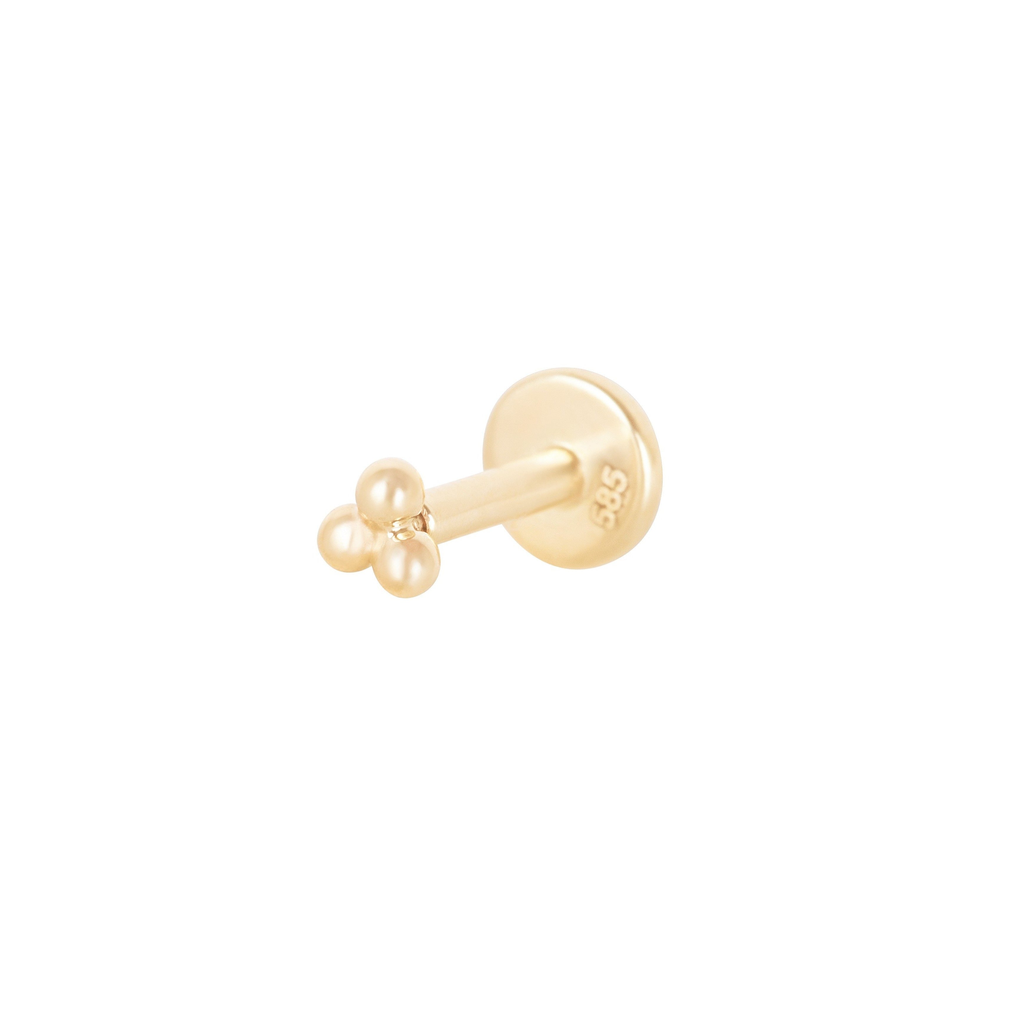 Super cute, this teeny trilogy flat back design is the perfect piece if you are looking for something subtle or have mini lobes! It is made in solid 14 karat yellow gold.