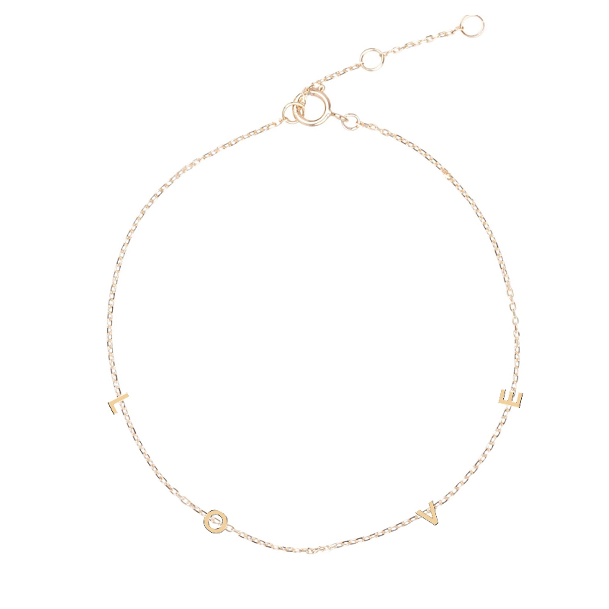 Celebrate your unique essence with this exquisite piece of jewellery! The Personalised Initial Bracelet 9k Gold is a canvas for your story. Choose your name, children's initials or any chosen word. Choose up to five letters. Why not treat yourself or surprise a loved one with a personalised necklace that showcases the thoughtfulness and care behind the gesture?