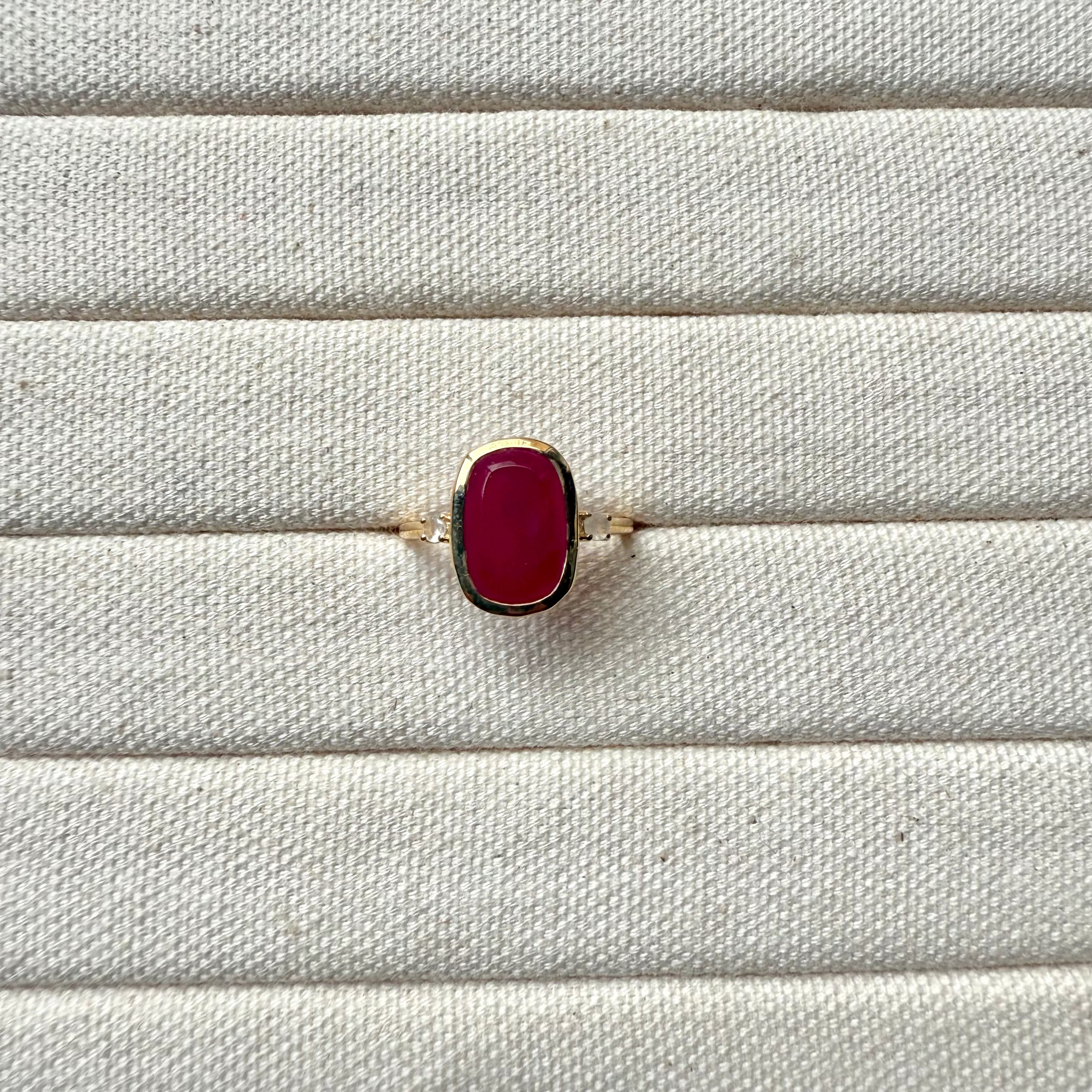 Pink Quartz & Moonstone Organic Ring 9k Gold Sample Size M