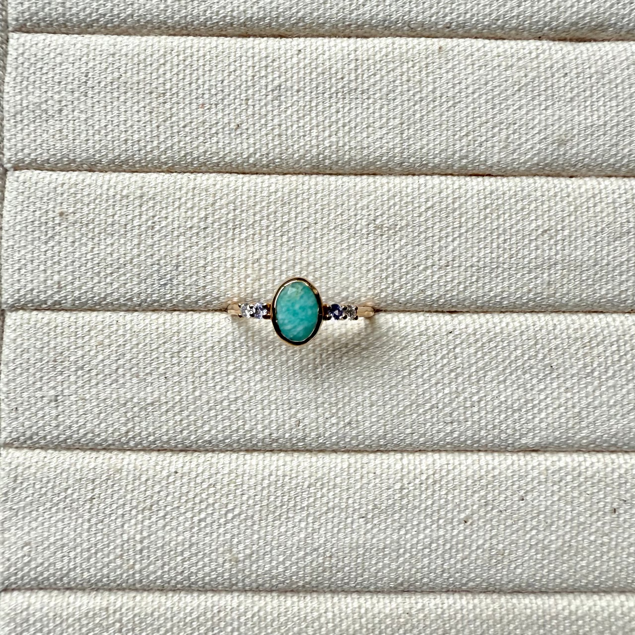 Amazonite, Tanzanite & Moonstone Ring 9k Gold Sample Size M