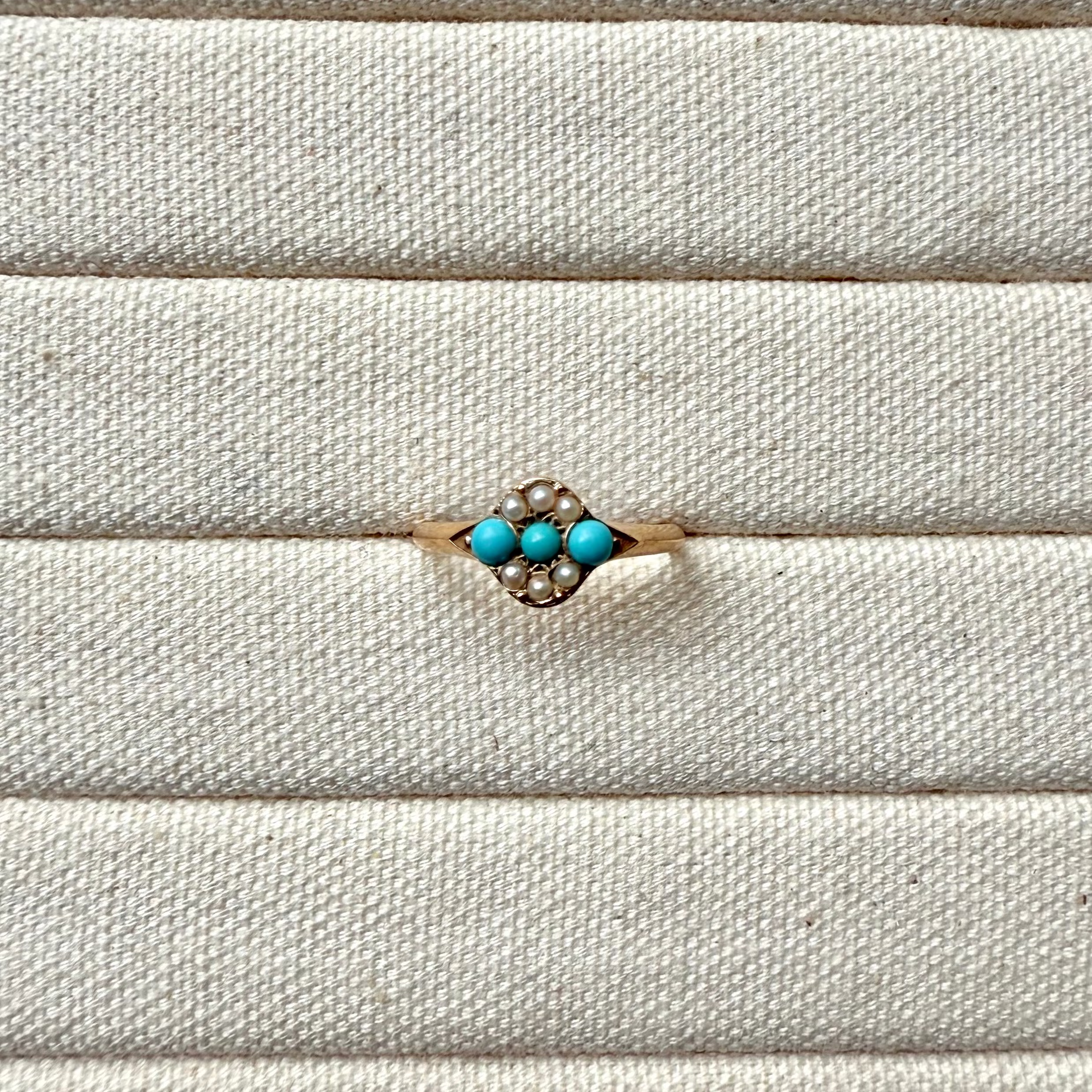 Turquoise & Pearl Ring 9k Gold Sample Size M