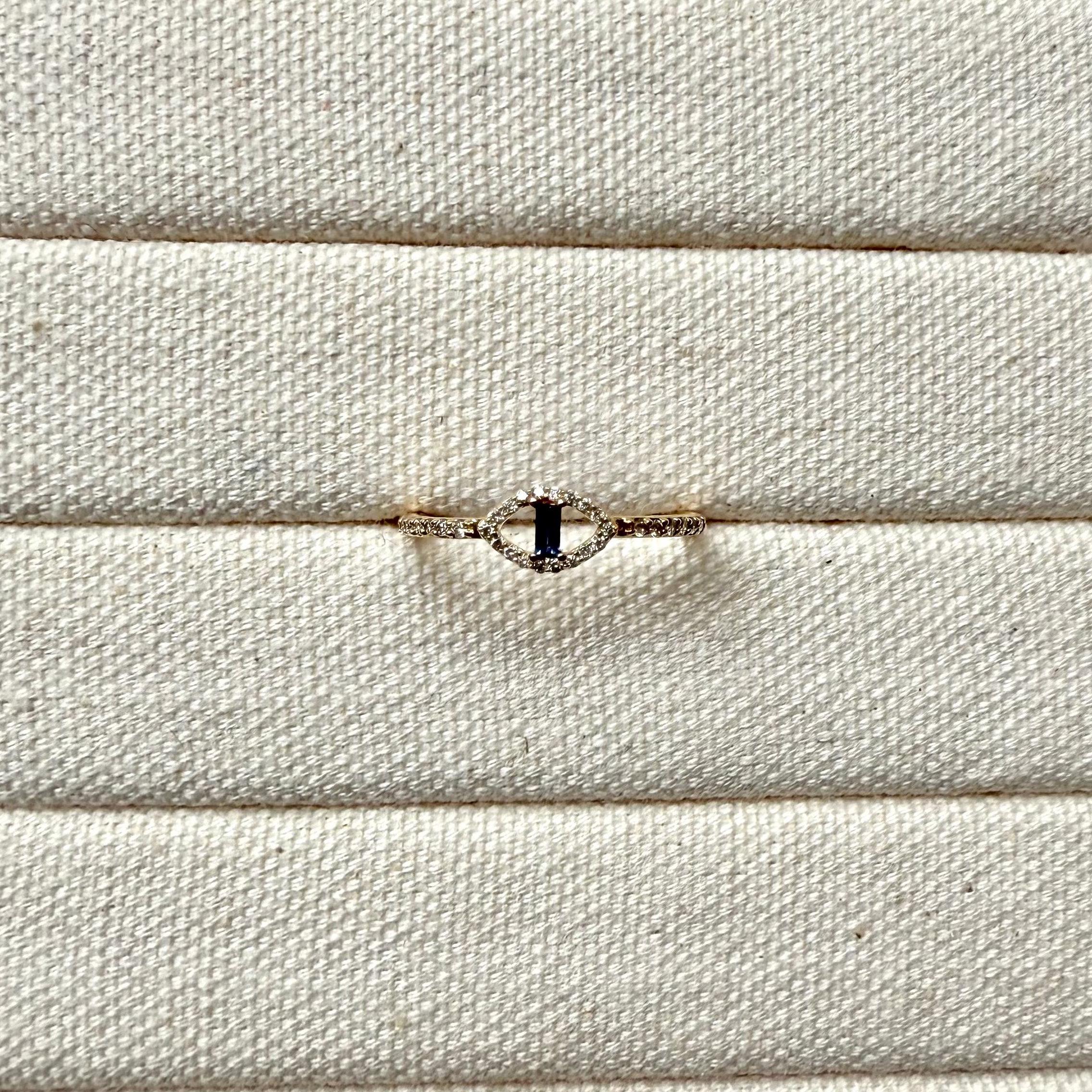 Sapphire & Diamond Eye Ring 9k Gold Sample Size M