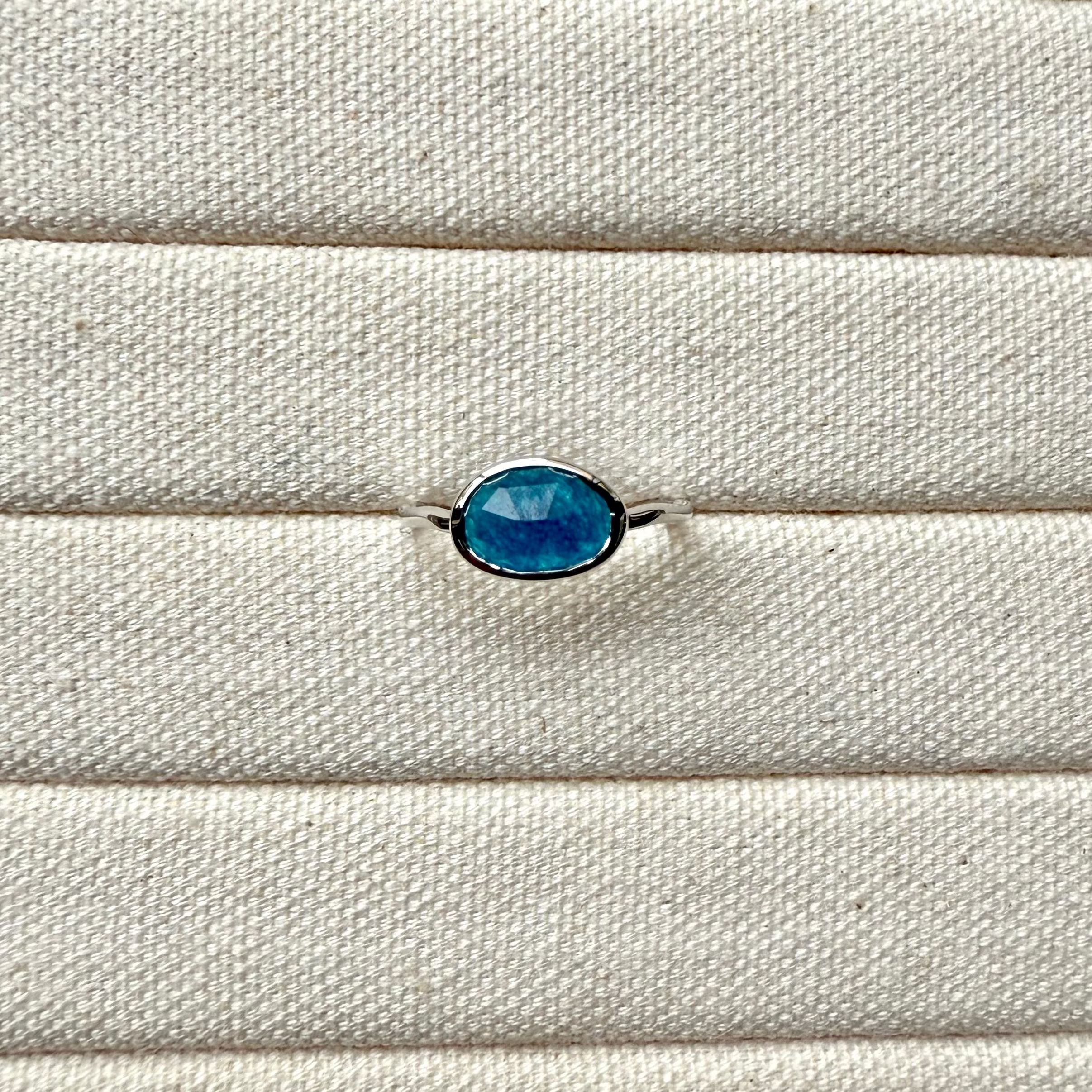 Petrol Blue Quartz Organic Ring Sterling Silver Sample Size M