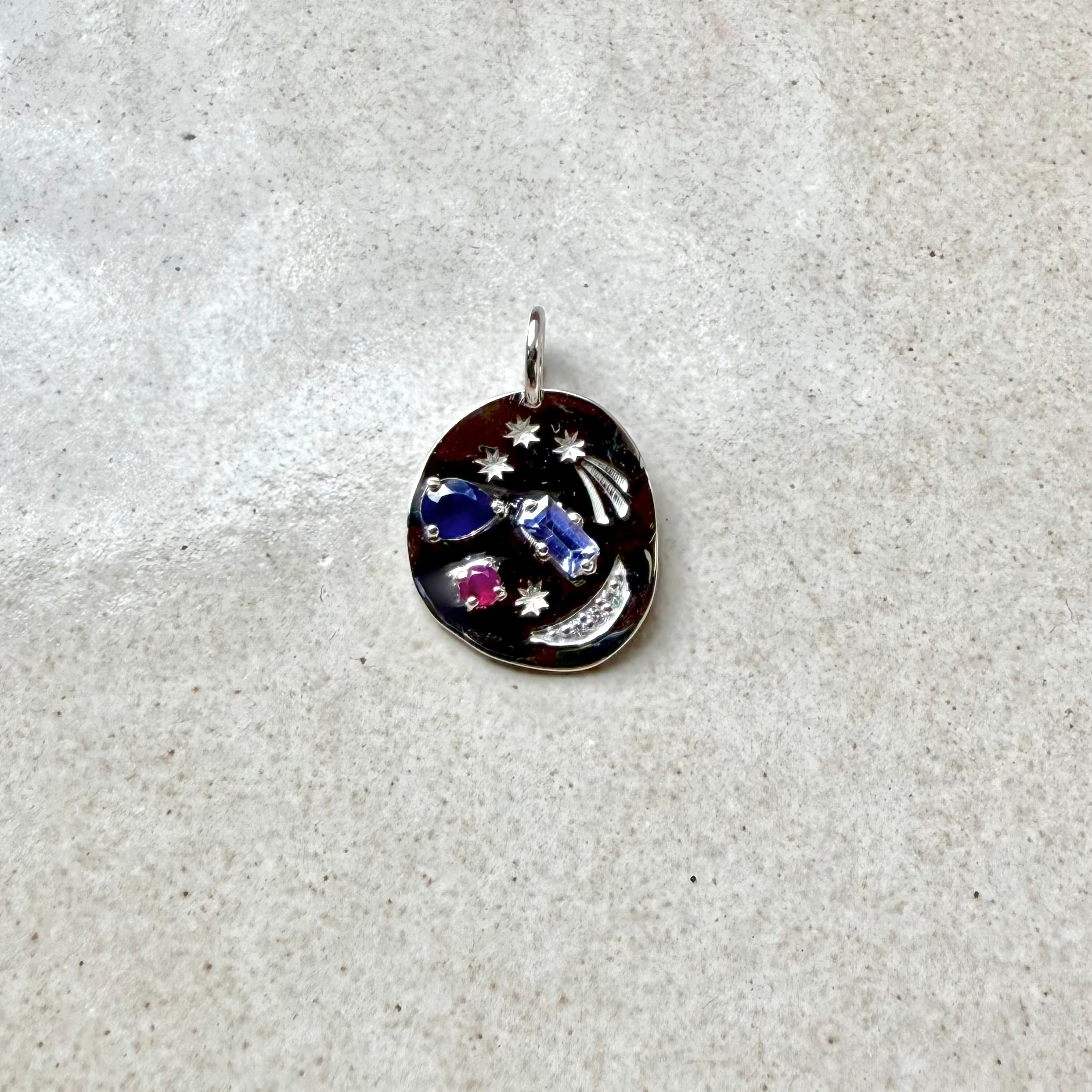 Sapphire Star Solitaire Charm Sterling Silver Sample